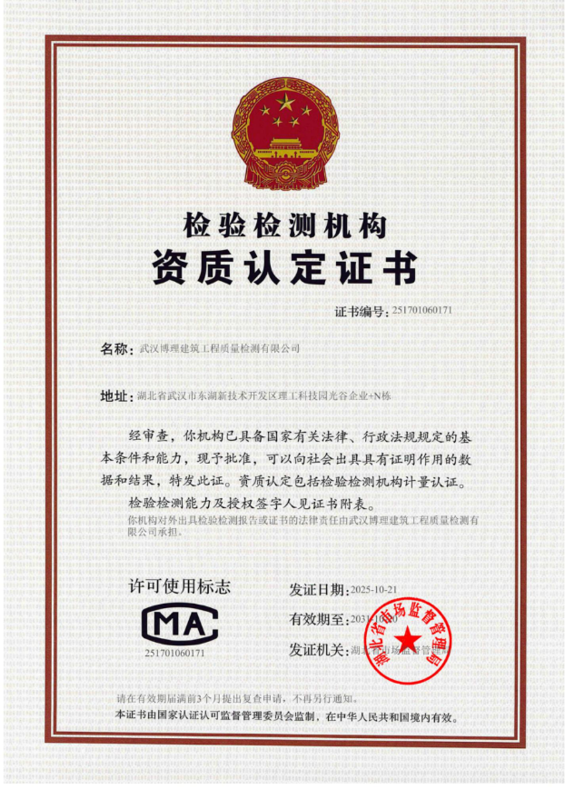 建设工程质量检测机构资质证书